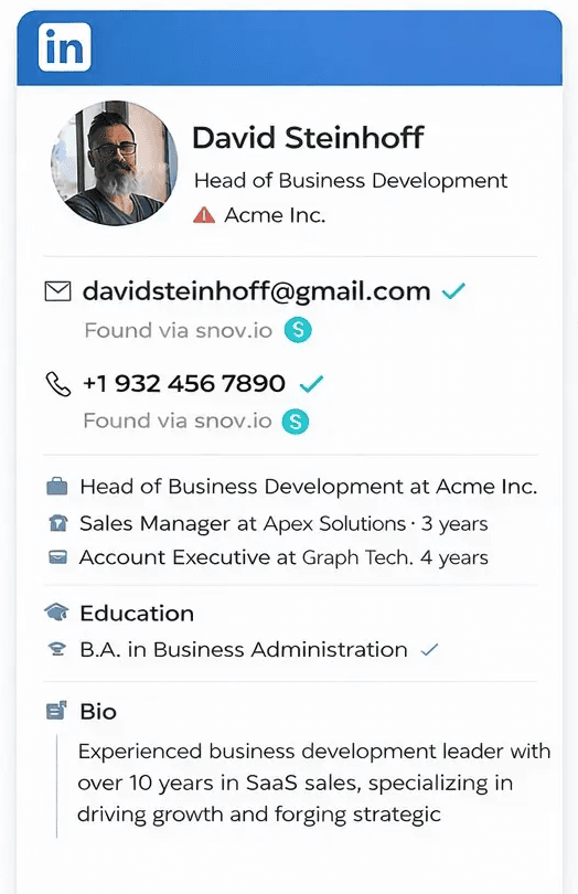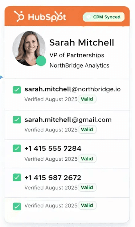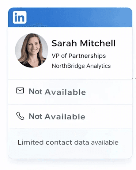 Enrich missing emails or phone numbers and add verified contact data without leaving LinkedIn.