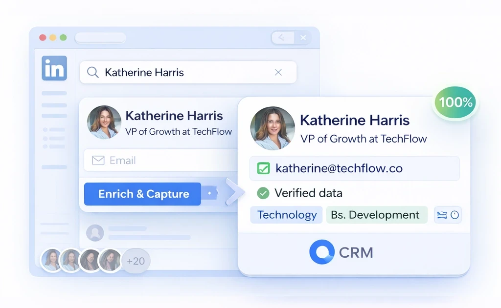 LeadCRM captures contact data directly from LinkedIn as you search and sends it into your CRM fully structured, so you can move from prospect to pipeline without slowing down.